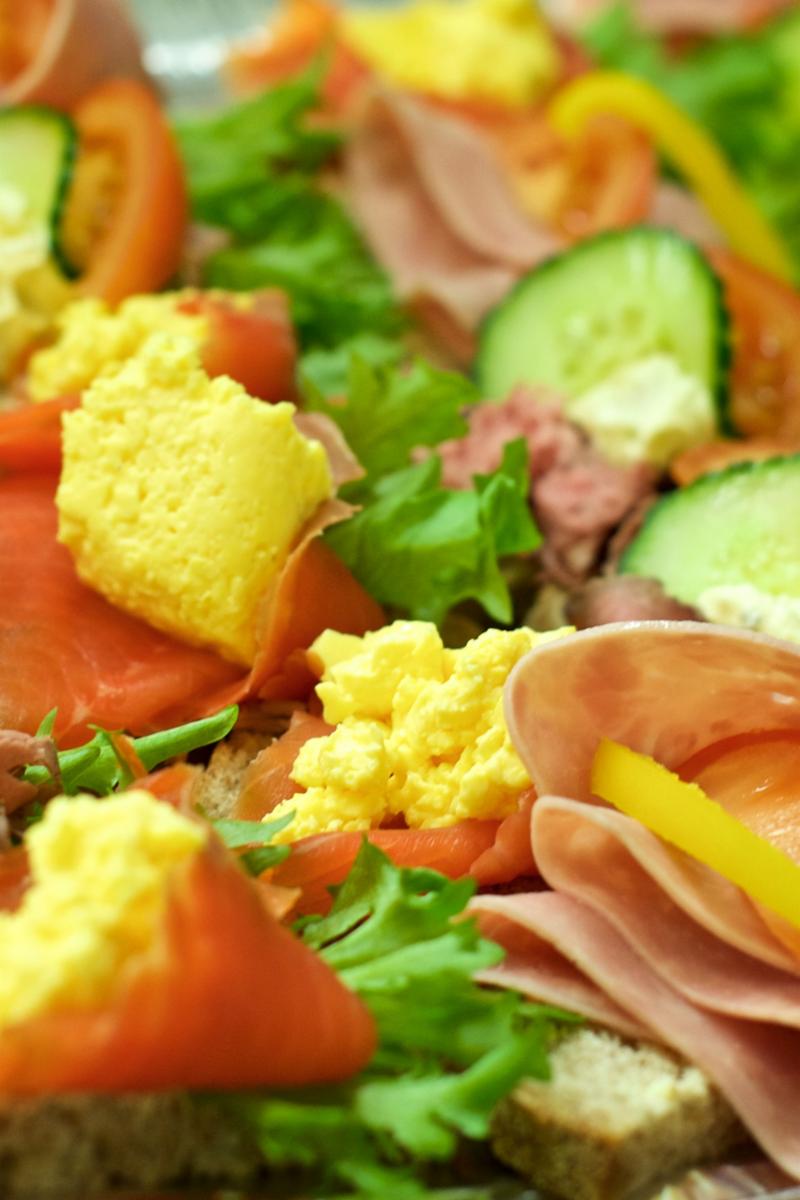 Velg mellom ost og skinke, røkt laks, roastbiff eller reker